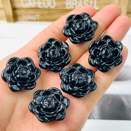 Black Obsidian Crystal Flower – Hand-Carved Spiritual Healing Stone