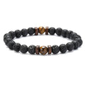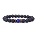 Natural Volcanic Lava Stone Chakra Bracelet – Healing Beads with Tiger Eye & Lapis Lazuli